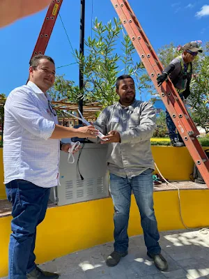 Paulo longo e o superintendente geral de administração Urânio Andrade, acompanharam a instalação da Internet gratuita no município, considerando os termos e condições pré-estabelecidos no projeto.